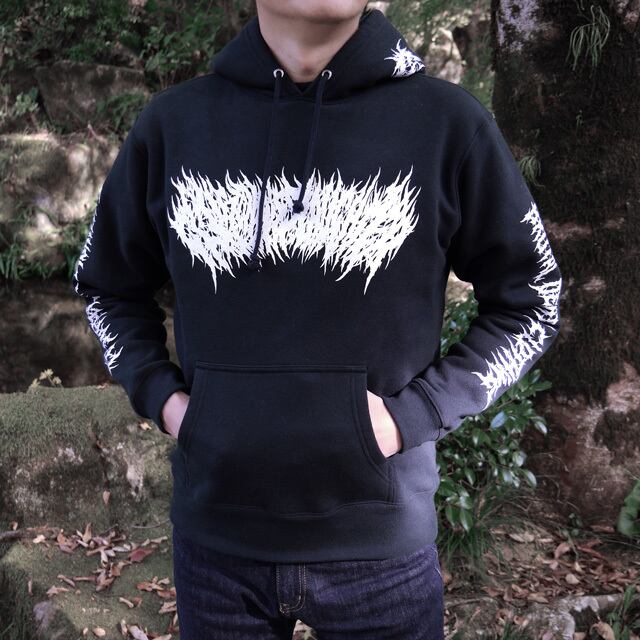 フード部分にGSの文字と、前面にはGluttonous Slaughterのブルータル文字を。